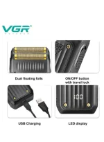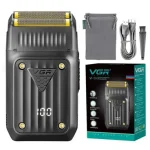 ماكينة تنعيم اللحية في جي ار Professional قابلة للشحن للاستعمال الرطب والجاف، اسود – V-363