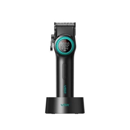 قص الشعر الاحترافي اللاسلكي VGR V-653 Salon Series مع شفرات محرك مطلي بطبقة DLC ومغنطيسي بسرعة 9000 دورة في الدقيقة وبطارية ليثيوم أيون قابلة لإعادة الشحن 2500 مللي أمبير في الساعة ومدة تصل إلى 100 دقيقة وقاعدة شحن USB وحامل